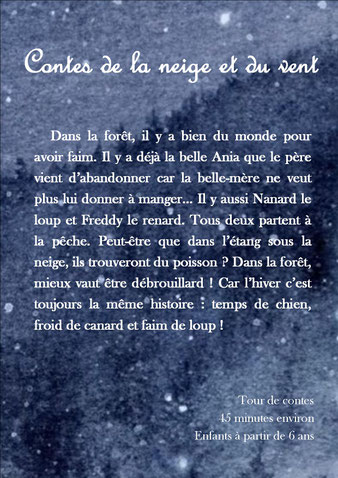 Pour les spectacles et animations autour de Noël, je privilégie des histoires qui parlent de l’hiver : la neige, le froid… et des êtres merveilleux tels que les lutins ou les fées… Mais il est possible que je fasse appel à d’autres univers pour m’ajuster au mieux à l’âge des enfants : histoires d’arbres ou d’animaux par exemple. Si le fond des histoires est profond, le registre général est joyeux et donne à rire, à rêver...